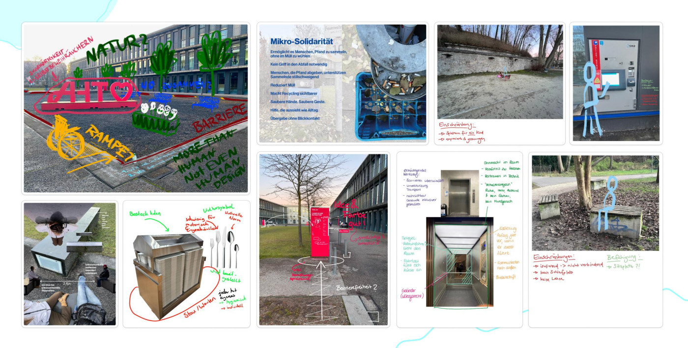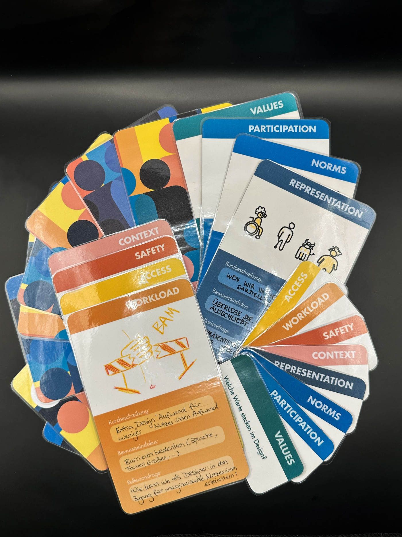 Als inhaltliche Grundlage dienten ausgewählte Texte zu den Themen Machtstrukturen, soziale Ungleichheit, parteiisches und politisches Design, Dekolonialisierung, Care, Intersektionalität, Partizipation und Transformation. Diese Texte wurden analysiert, kontextualisiert und in eine gemeinsame Denkbewegung überführt, aus denen Erkenntnisfragen, weiterführende Perspektiven sowie jeweilige Interaktions-Artefakte entstanden.