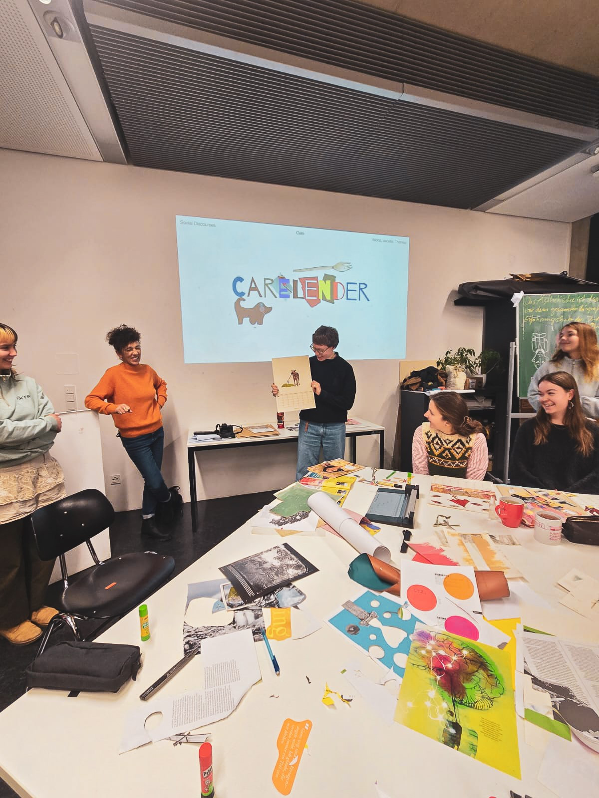 Im Kurs Social Discourses kreierten wir einen gemeinsamen Denk- und Gestaltungsraum, in dem Design als machtkritische, relationale und gesellschaftlich wirksame Praxis verhandelt wurde – und Macht als etwas, das gestaltet, verteilt, hinterfragt und kritisch reflektiert werden kann.
