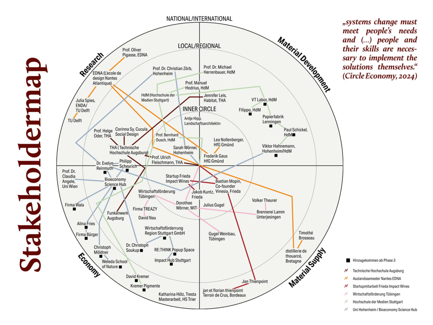 Der Entwicklungsprozess ist eng mit Stakeholdern aus Weinbau, Forschung und Praxis verknüpft. Durch diesen Austausch wird das Material direkt in bestehende Strukturen eingebettet und sein zukünftiges Potenzial mitgedacht. Außerdem versteht sich die Arbeit als Beitrag zu einer offenen, kollaborativen Materialforschung. Ergebnisse und Erkenntnisse sind so angelegt, dass sie weiterentwickelt, angepasst und im Sinne eines Open-Source-Gedankens genutzt werden können.